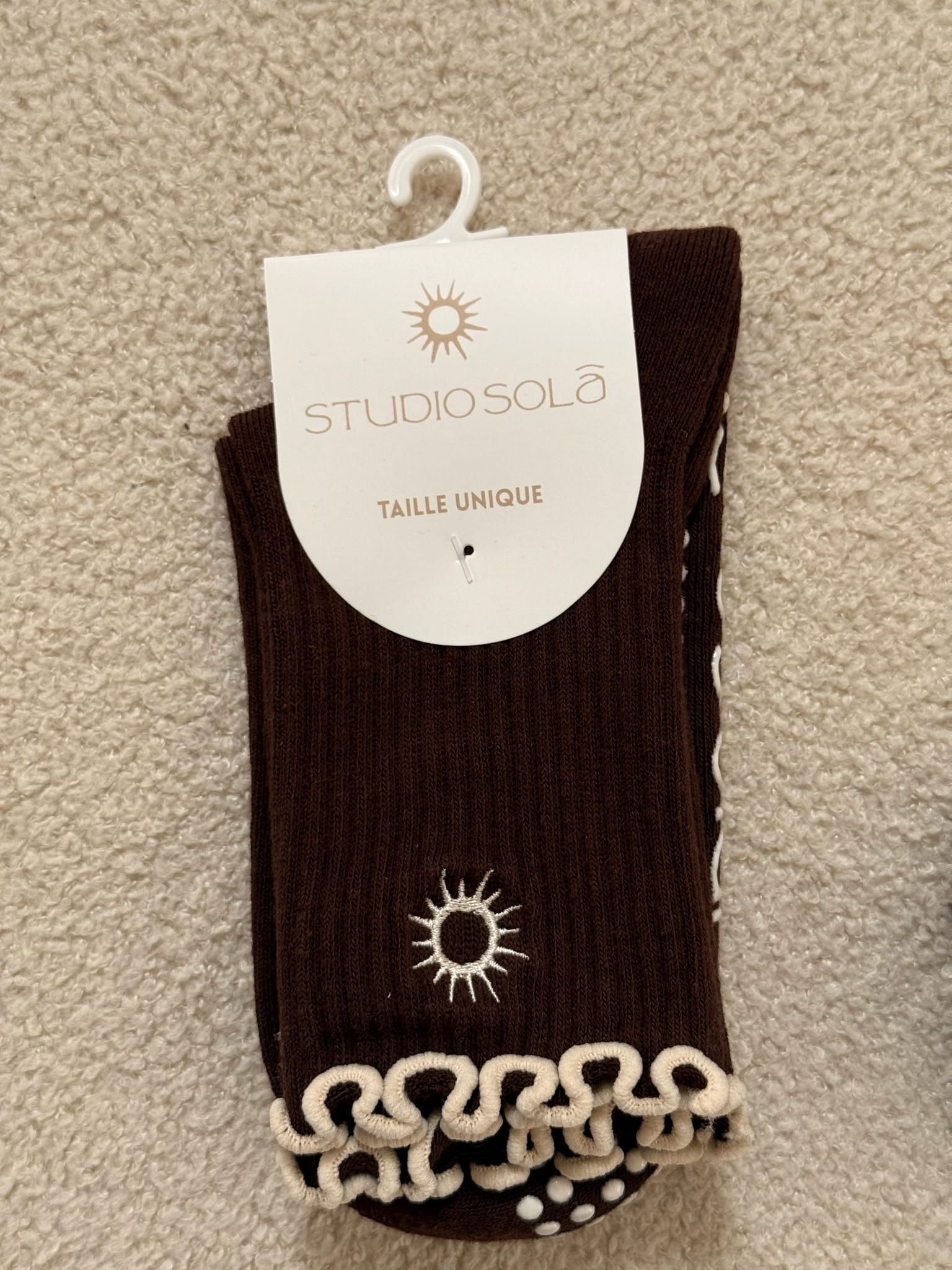 Les chaussettes antidérapante marron froufrou indispensables pour vos séances chez Studio Sola.